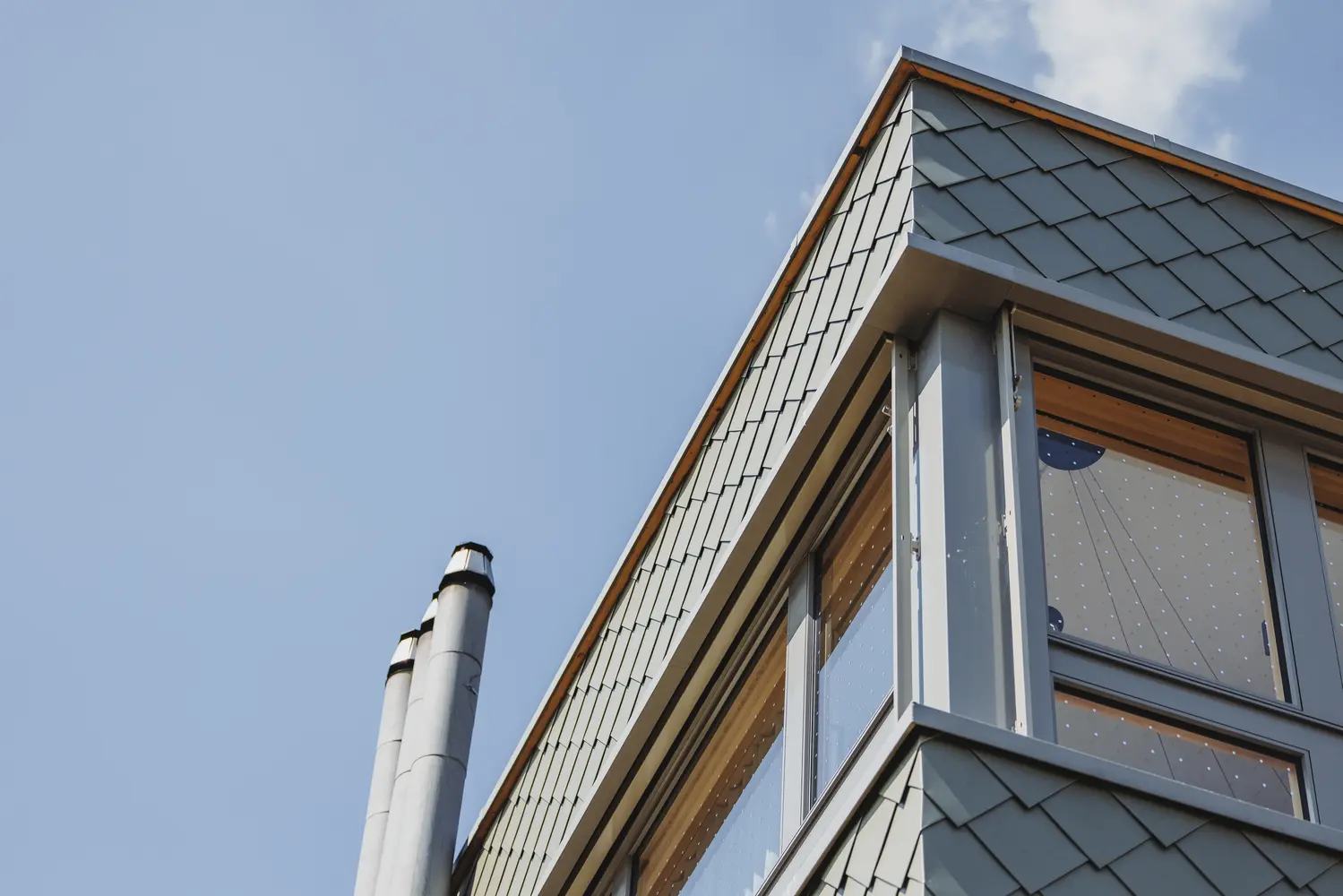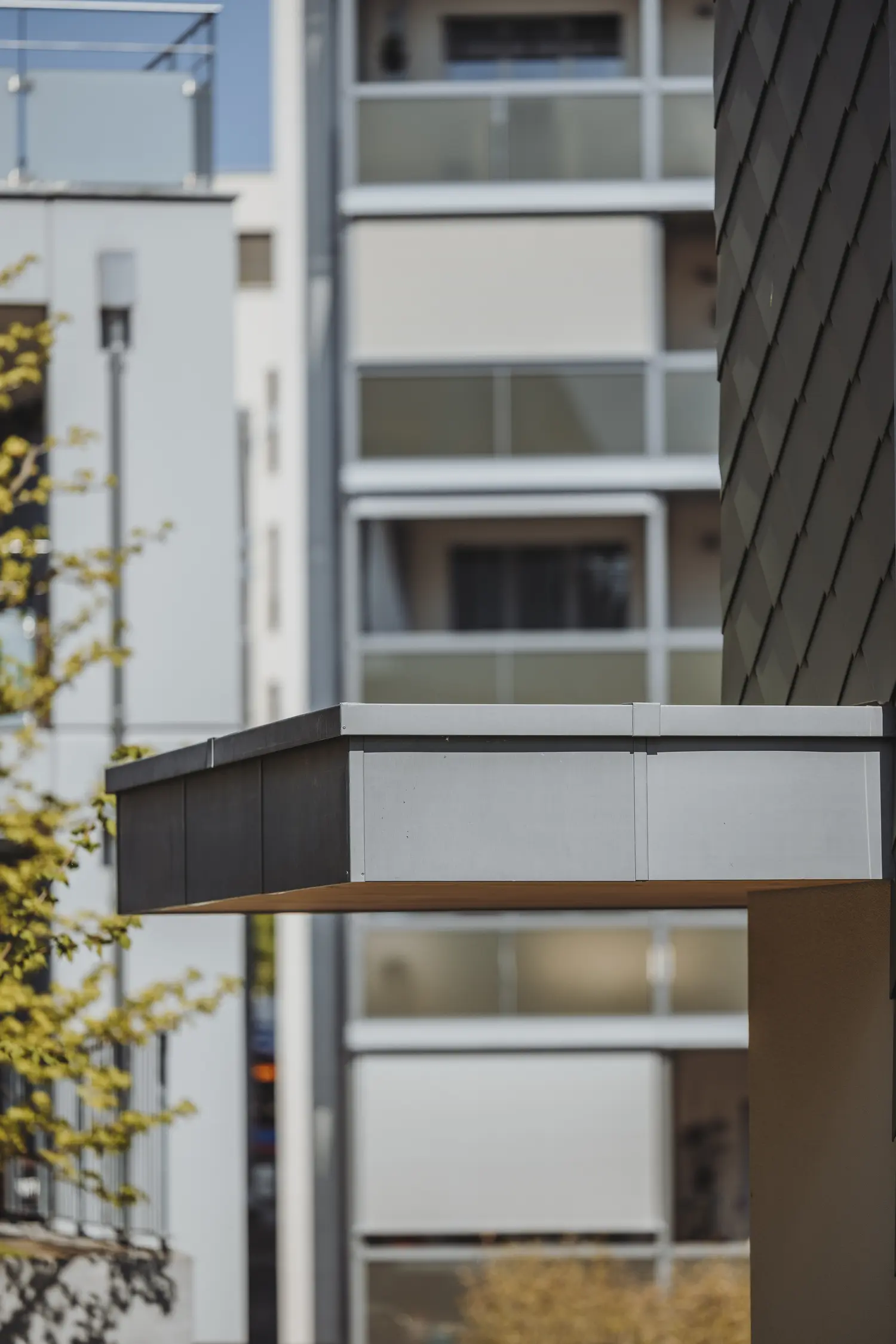 Das Mehrfamilienhaus der Sprengimatt in Emmenbrücke wurde mit einer Blechfassade aus Zink veredelt.
