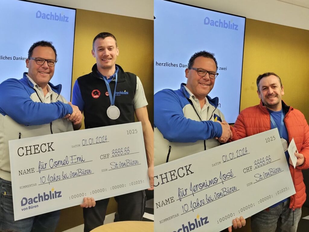 Stabsübergabe bei Dachblitz, Schritt 1: Silvan von Büren übernimmt mit Stephan die Geschäftsleitung der von Büren Dachblitz AG.