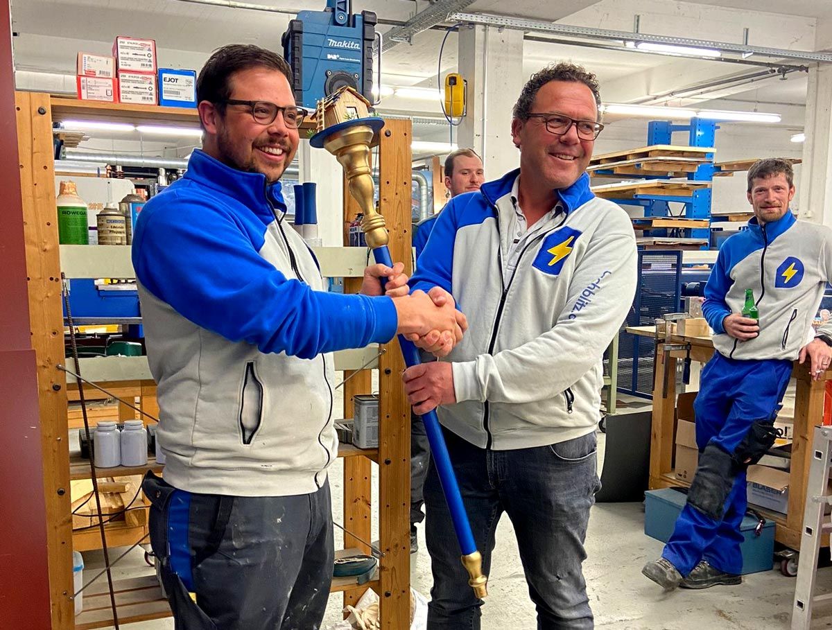 Zu diesem Zweck hat das Dachblitz-Team einen „Major-Stab“ gefertigt, der Silvan ebenso offiziell wie symbolisch übereicht wurde – herzlichen Dank ans grandiose Team für diese tolle Geste. Wir sind stolz und dankbar, auf solchen Support zählen zu dürfen. Die nächsten Schritte sind geplant.